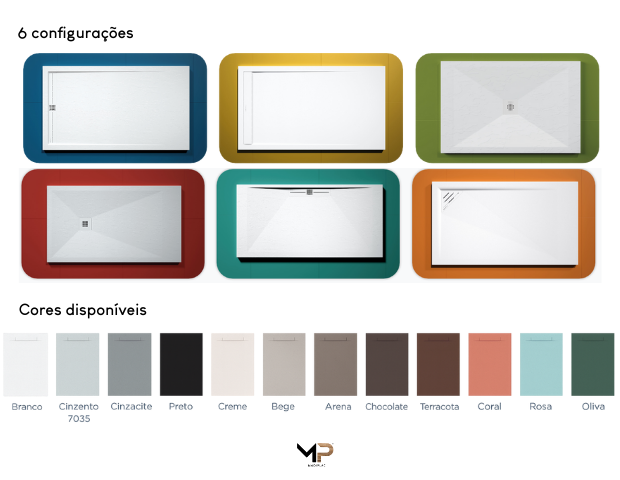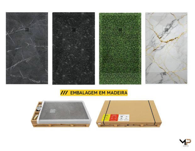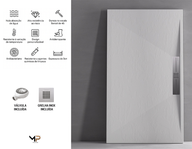 Base de duche em cargas minerais e resina de poliéster, com acabamento em Gel antibacteriano.